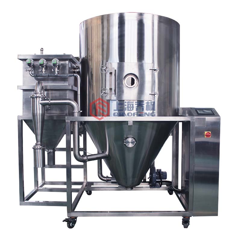 尤其是在液體工藝成型以及干燥領域中,離心噴霧干燥機起到了極為重要的作用。其可以將液體原料生成粉狀、顆粒狀產品。因此當顆粒大小分布、殘留水分含量、堆積密度和顆粒形狀符合精確的標準時,噴霧干燥是一道十分理想的工藝。