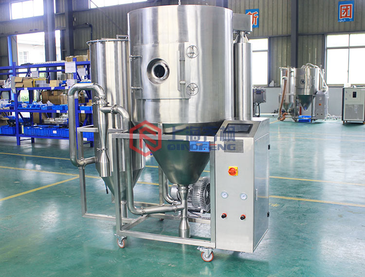 壓力噴霧干燥機(jī)是一種可以同時完成干燥和造粒的裝置。按工藝要求可以調(diào)節(jié)料液泵的壓力,流量,噴孔的大小,得到所需的按一定大小比例的球形顆粒。